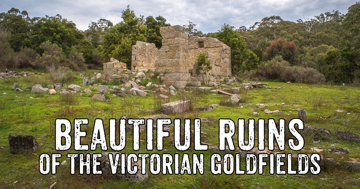 Surrounded by forest, the ruins of the Jubilee Company Quartz Gold Mine are a must-see in Staffordshire Reef, VIC