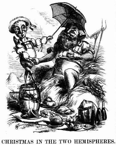 Christmas in the two hemispheres, 1861. Image source: Trove