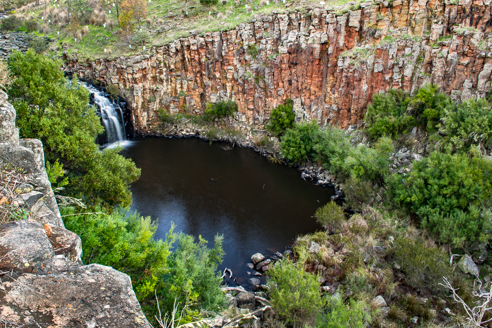 Next up we have the spectacular Loddon Falls, out the other side of Daylesford in Glenlyon. Here the Loddon River drops dramatically over a wall of huge hexagonal basalt columns into a pool below before continuing on through the spectacular rocky gorge.